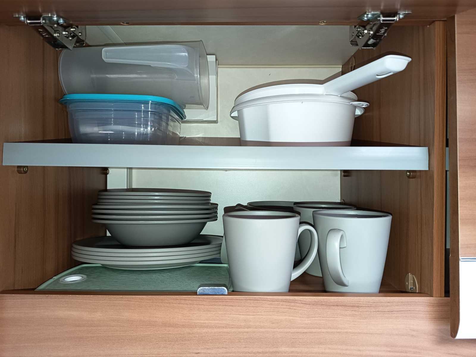 Der Wohnwagen ist umfangreich ausgestattet. So sind neben Geschirr, Kochtöpfen, Kochutensilien und Besteck eine Grundausstattung an Gewürzen, Tee etc. vorhanden. Ein Campingtisch, 2 Campingstühle, Handtücher für 2 Personen, Geschirrtücher und der Spannbezug für das Bett ist ebenfalls inclusive. Weiterhin eine Kabeltrommel (15m) incl. der notwendigen Adapter, Abwassertaxi, Wasserkanister, Gießkanne und eine kleine Sackkarre.